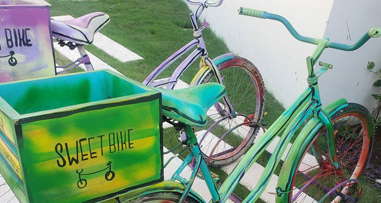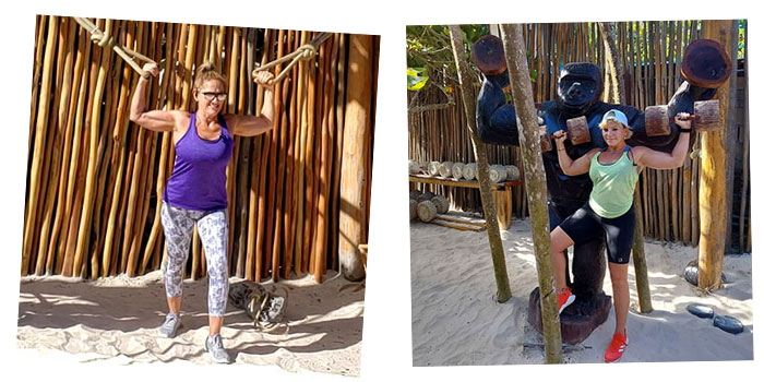 My former client and friend, Beth, and I decide to take the somewhat treacherous bike ride along the pitted “paved” road down to the beach from Aldea Zama to check out this famous Flintstone gym. Always up for a challenge and an adventure, the two of us feel like kids going to a candy store. We wake early in the morning, retrieve our bikes that include a lovely basket and bell on the handlebars and make our way with hopes to meet Fred and Wilma, straight up.
